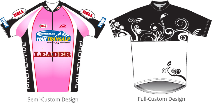 To speed up the development we offer to you the semi-custom design. You can choose models, fabrics and design among the available options. You may change colors, to place your team logos. The quickest and easiest way to create your team design.